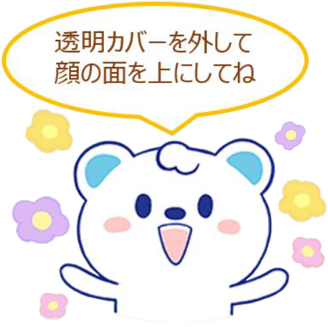 - ❶透明カバーを外します